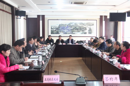 本网讯 3月13日上午,西华大学党委常委、副校长王政书一行来桥与我区签订战略合作框架协议。区委副书记、区长杨军,区委常委、副区长王文波参加签约仪式。